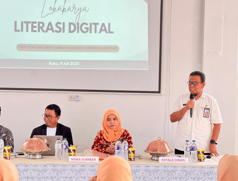 Sidrap, – Dharma Wanita Persatuan (DWP) Kabupaten Sidenreng Rappang berkolaborasi dengan Dinas Perpustakaan dan Kearsipan setempat menggelar Lokakarya Literasi Digital di Aula Gedung Layanan Perpustakaan Daerah Sidrap, Selasa-Rabu, 8-9 Juli 2025. Lokakarya ini bertujuan meningkatkan literasi digital masyarakat Sidrap serta mendorong pemanfaatan teknologi informasi secara bijak untuk mendukung ekonomi keluarga dan kemajuan daerah. Peserta terdiri anggota Dharma Wanita, pustakawan, penggiat literasi, serta pengelola perpustakaan desa dan kelurahan. Pemateri dari Object Media Digitama Makassar hadir memberikan materi terkait digitalisasi konten kreator dan pemanfaatan teknologi informasi untuk menumbuhkan wirausaha digital.