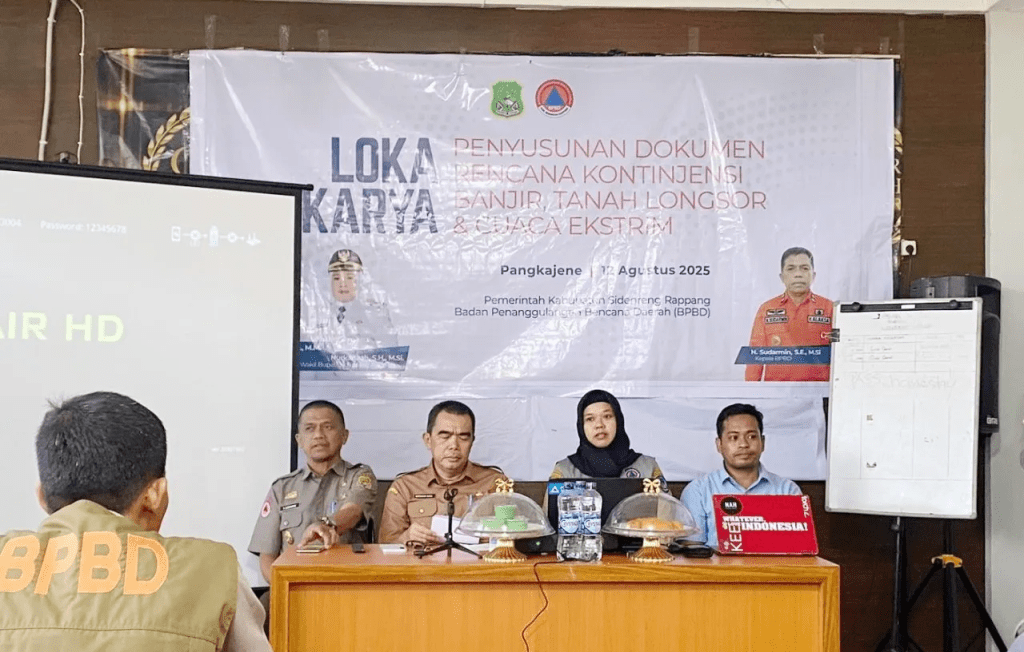SIDRAP, lapagala.com – Badan Penanggulangan Bencana Daerah (BPBD) Kabupaten Sidenreng Rappang melibatkan berbagai pemangku kepentingan dalam lokakarya, focus group discussion (FGD), dan workshop penyusunan dokumen Rencana Kontinjensi Banjir, Tanah Longsor, dan Cuaca Ekstrem, Selasa (12/8/2025).