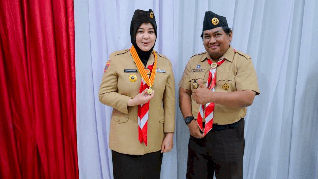 Makassar, lapagala.com – Wakil Gubernur Sulawesi Selatan sekaligus Ketua Kwartir Cabang (Kwarcab) Kota Makassar, Fatmawati Rusdi, menerima Lencana Melati dari Kwartir Nasional (Kwarnas) Gerakan Pramuka pada prosesi penganugerahan di Lapangan Perkemahan Putri 2, Bumi Perkemahan dan Graha Wisata Pramuka (Buperta) Cibubur, Rabu, 13 Agustus 2025.