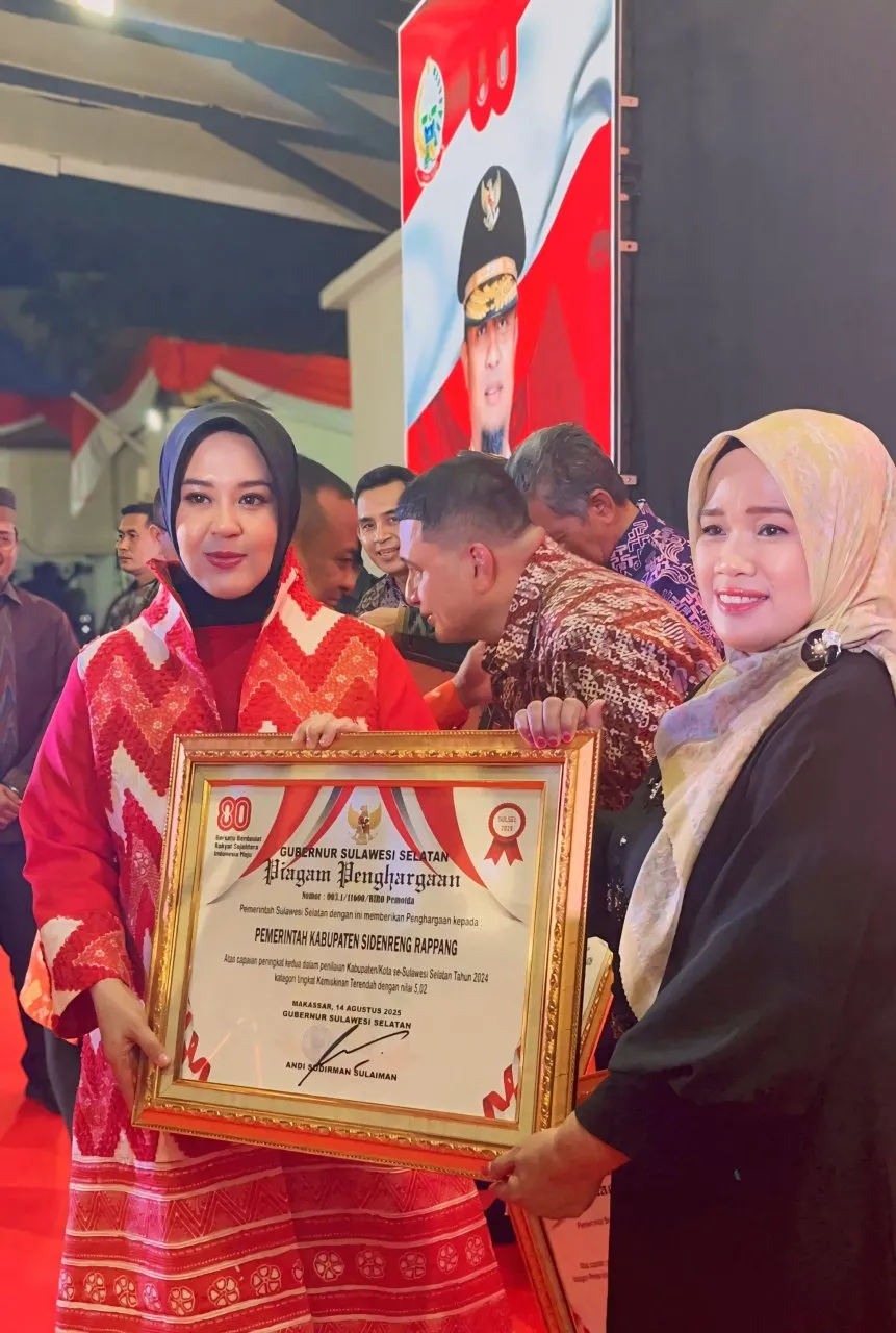 MAKASSAR, LAPAGALA.COM – Pemerintah Kabupaten Sidenreng Rappang (Sidrap) menerima penghargaan dari Pemerintah Provinsi Sulawesi Selatan, tepat di Hari Kemerdekaan ke-80 Republik Indonesia, Ahad (17/8/2025).