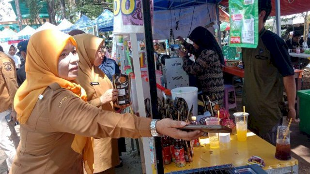 Suriani tidak hanya hadir sebagai tamu kehormatan, tetapi juga menyempatkan diri melihat secara langsung berbagai produk unggulan yang dipamerkan oleh pelaku UMKM, komunitas, dan usaha kreatif dari berbagai kecamatan di Pangkep. Salah satu produk yang menarik perhatian adalah “Doe Doe” dari Pulau Salemo, yang tampil dengan kemasan modern dan estetika yang menarik.