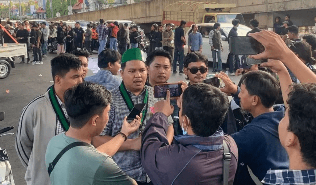 Puluhan kader HMI hadir membawa spanduk dan poster berisi tuntutan agar pemerintah tidak lepas tangan atas insiden yang mengakibatkan kerusakan fasilitas publik dan jatuhnya korban luka.