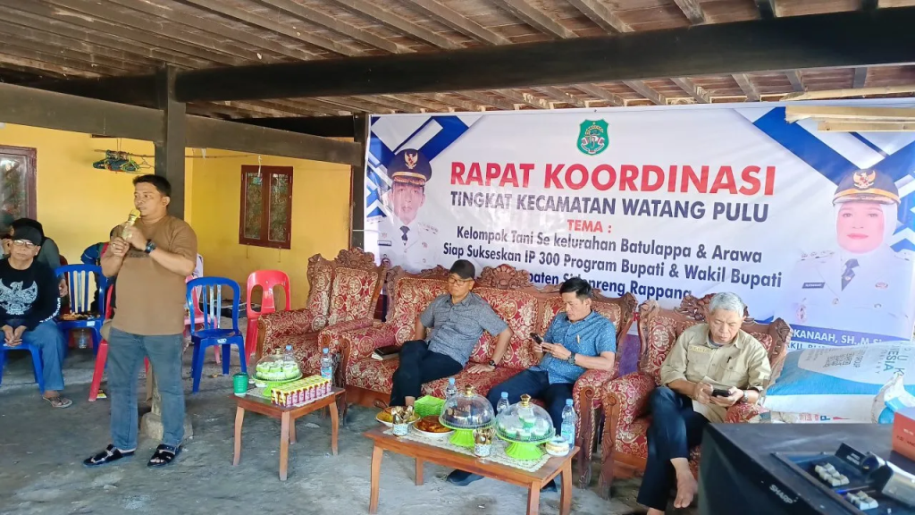 Rakor tersebut membahas sosialisasi sekaligus implementasi program Indeks Pertanaman 300 (IP300), yakni penanaman padi sebanyak tiga kali dalam setahun di lahan yang sama. Kegiatan berlangsung di rumah salah satu petani di Kelurahan Batulappa, dipimpin Camat Watang Pulu, H. Hidayatullah Abbas.