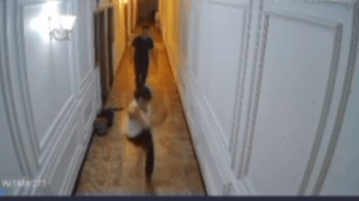 Pria berbaju hitam yang berada di luar kamar bergegas menghampiri, mengetuk dan menggedor pintu sambil berteriak, “Buka, buka! Kenapa itu?” Namun, bukannya jawaban, tiba-tiba seorang pria berbaju singlet putih keluar panik dan langsung kabur meninggalkan lokasi.